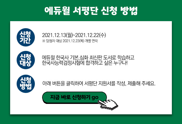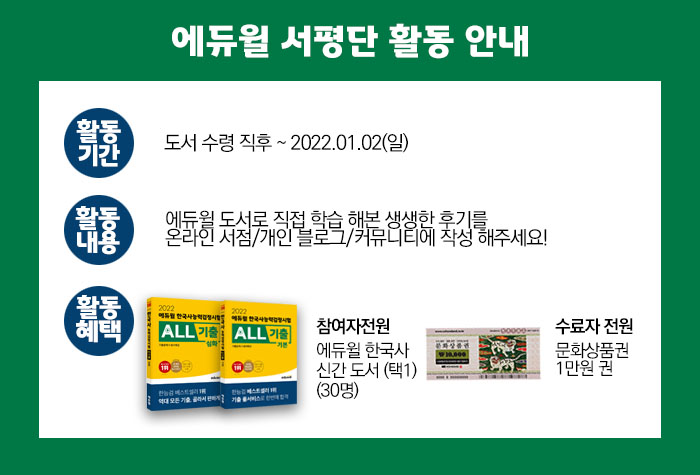 - 참여자 전원: 2022 에듀윌 한국사능력검정시험 ALL기출 기본 or 심화 (택 1) 30명