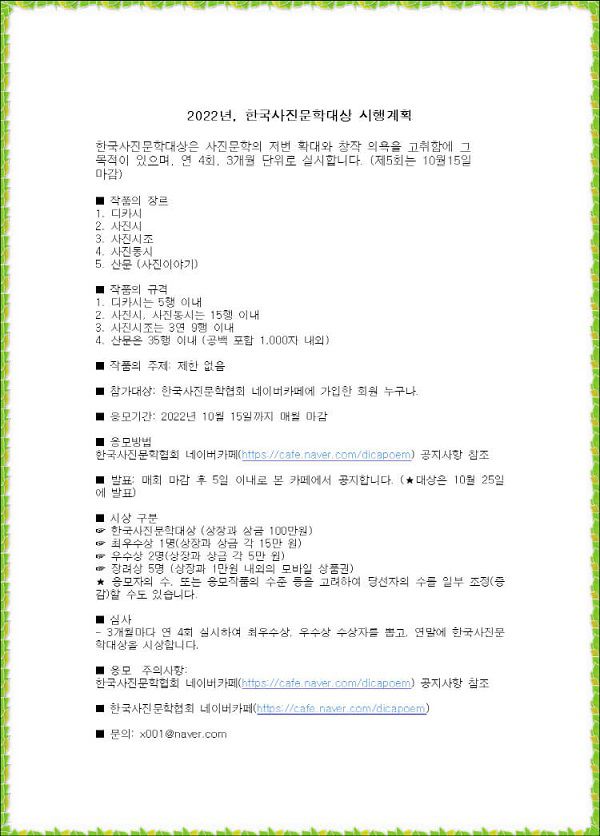 - 한국사진문학협회 네이버카페(cafe.naver.com/dicapoem)에서 공지사항 참조