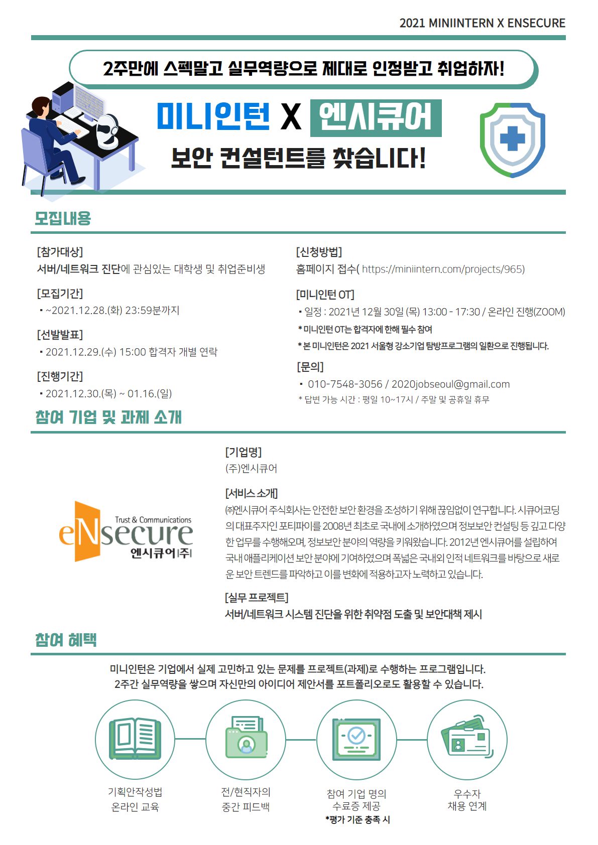 이번 프로젝트는 엔시큐어의 보안 컨설턴트 채용형으로 진행되며,