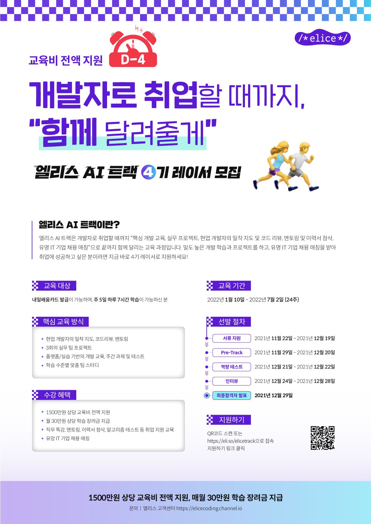 핵심 개발 이론 교육과 실무 팀 프로젝트를 통해 개발 역량을 향상시키고, 이력서 첨삭과 채용 매칭을 통해 원하는 기업의 개발자로 취업하고 싶은 분이라면 지금 바로 엘리스 AI 트랙 4기에 합류하세요!