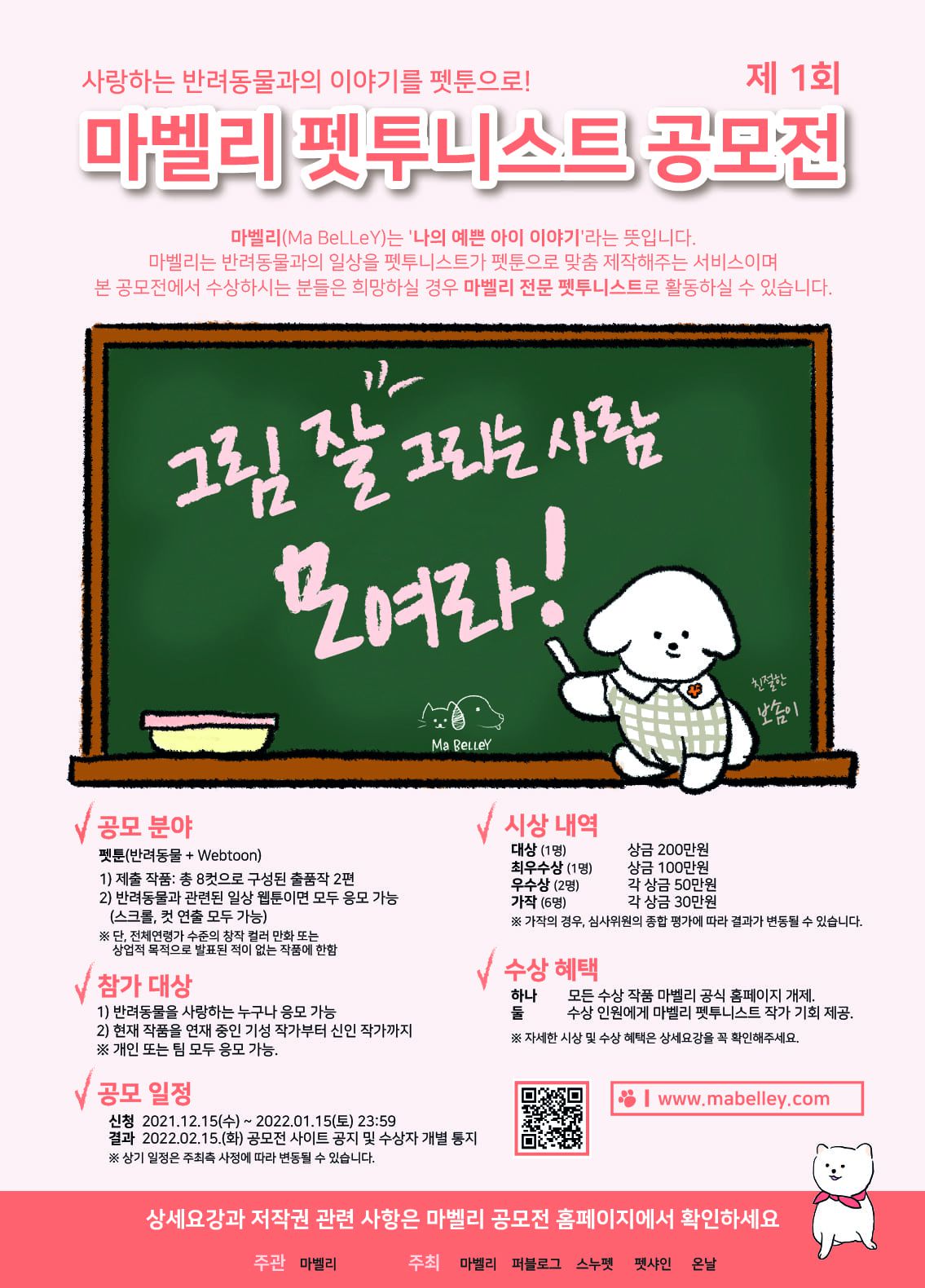 - 모든 수상 작품은 마벨리 공식 홈페이지 개제 - 수상 인원에게는 마벨리 펫투니스트 작가 기회 제공 |
