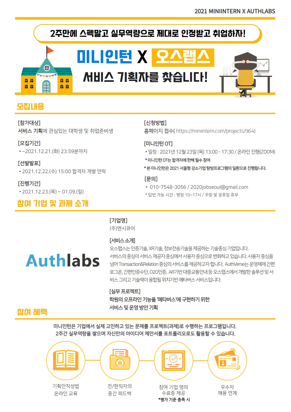 - 미니인턴 신청 : https://bit.ly/3pRWRnI