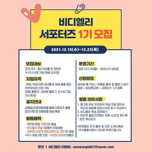 ▶서포터즈 모집 기간 : 2021.12.15(수) ~ 2021.12.23(목)