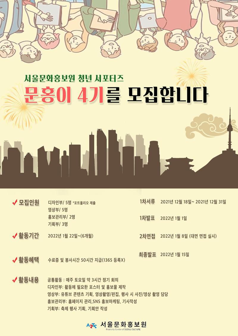 서울문화홍보원 서포티즈 청년위원회 문홍이 4기를 모집합니다.