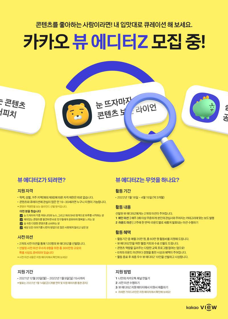 - 2개의 사전 미션을 통해 120명의 뷰 에디터Z를 선발합니다.
