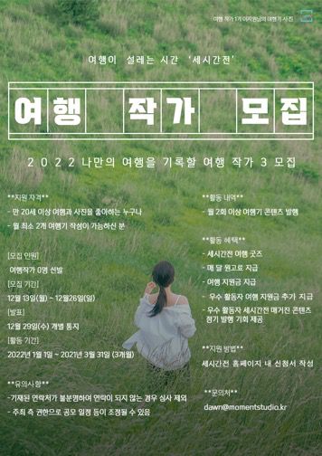 - 모집 기간 : 2021년 12월 13일(월) ~ 2021년 12월26일(일)