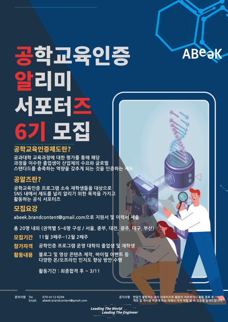 공학교육인증 프로그램 소속 재학생들 대상 SNS 내에서 제도를 알리기 위한 목적으로 활동하는 공식 서포터즈