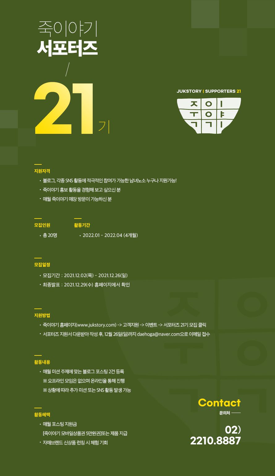 죽이야기에 애정을 가진 모든 분들 다 지원하실 수 있으니 망설임 없이 지원 부탁드려요:)