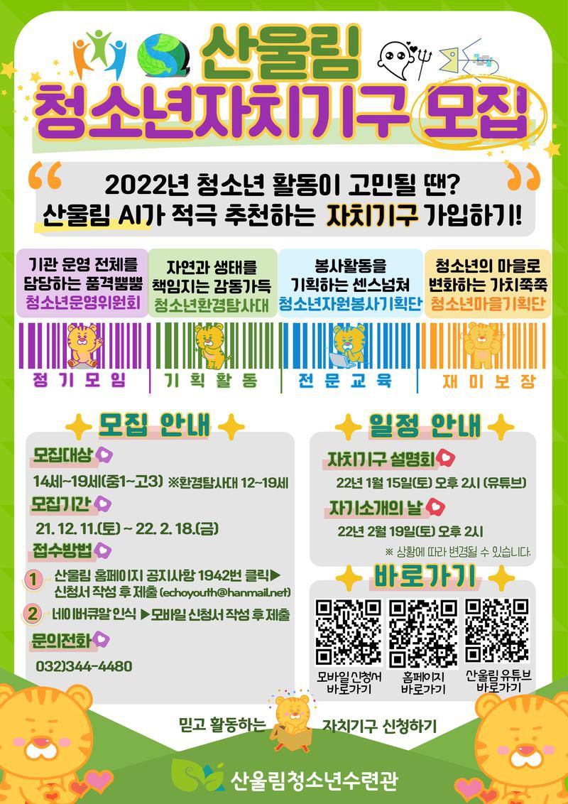 안녕하세요! 산울림청소년수련관과 2022년을 함께할 청소년을 찾고 있습니다!!