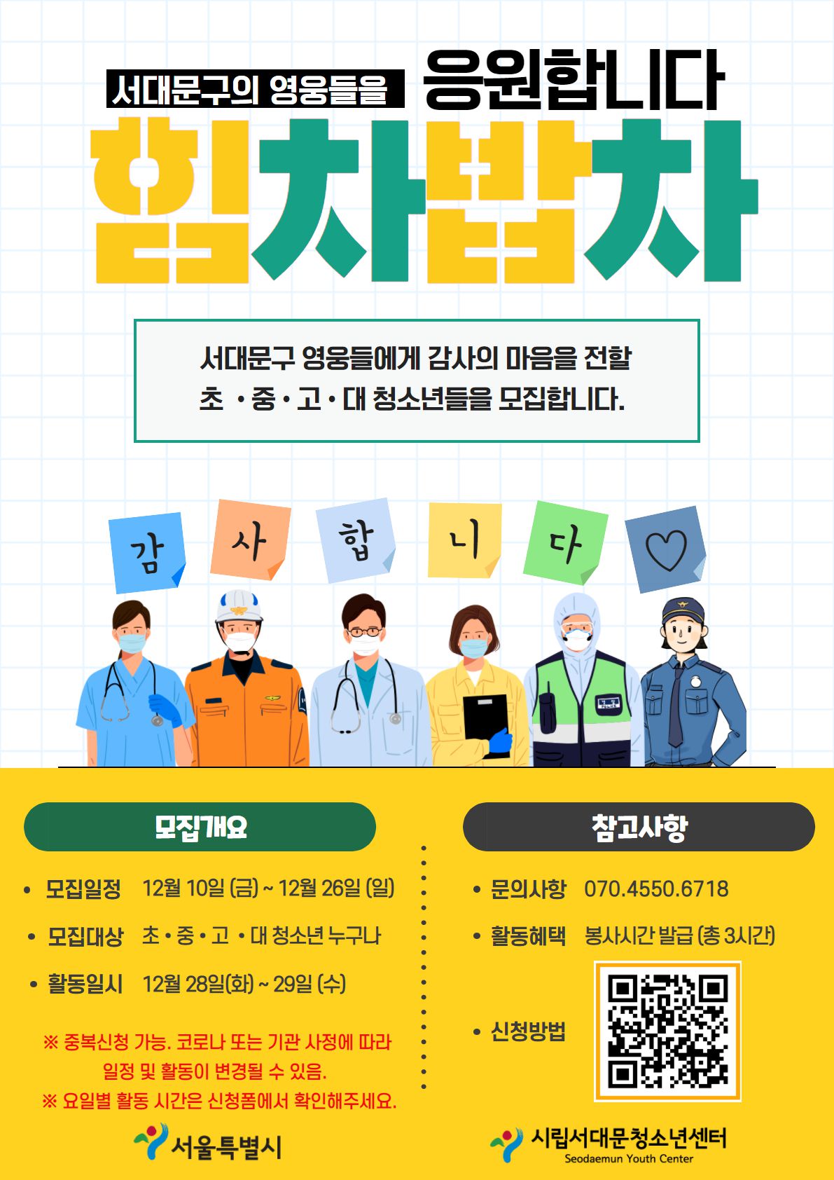서대문 영웅들을 위해 청소년들이 함께 간식을 배달합니다.
