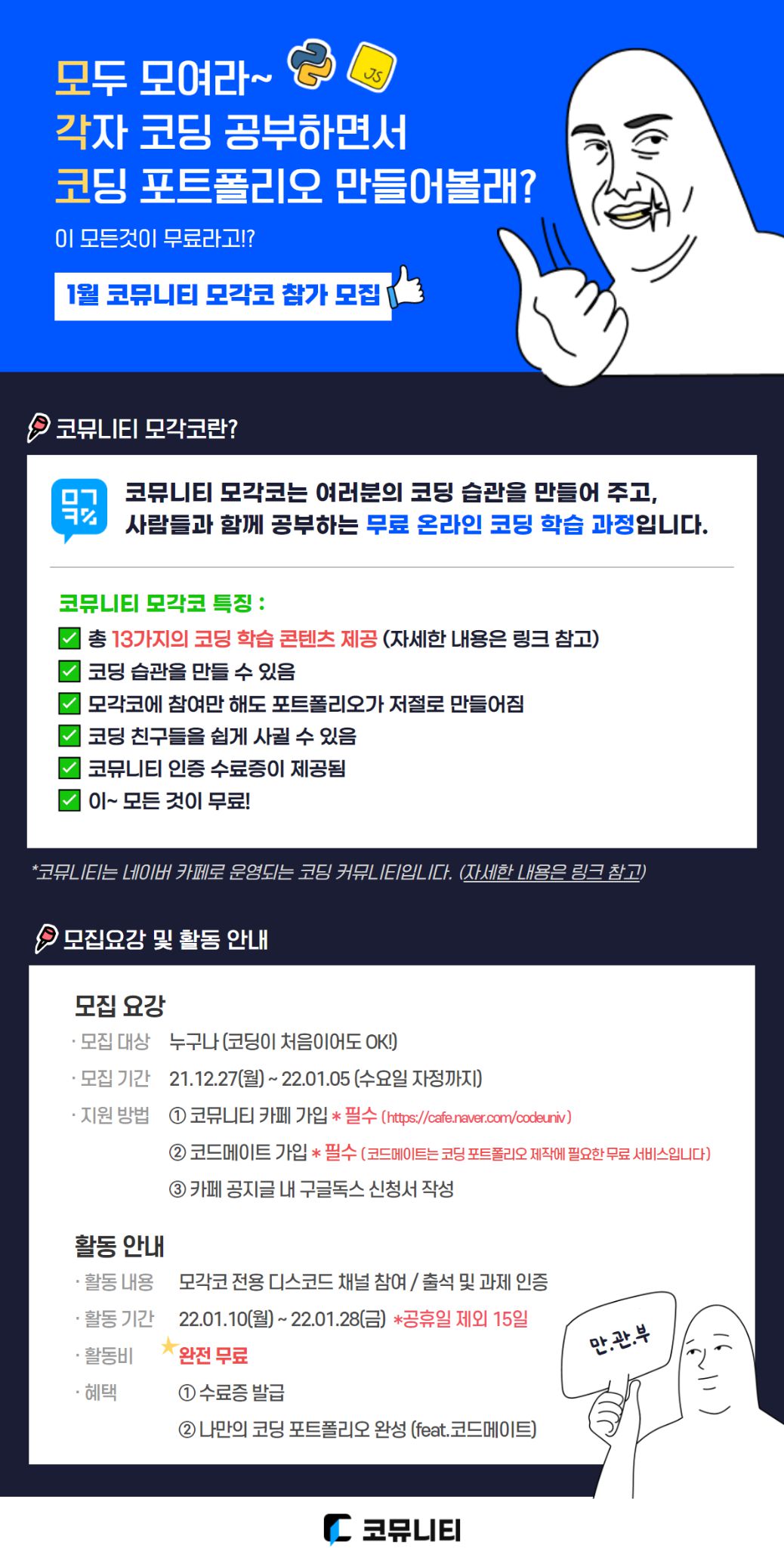- 선발 발표 : 22. 01. 06~07 (목~금) - 코뮤니티 카페에서 발표