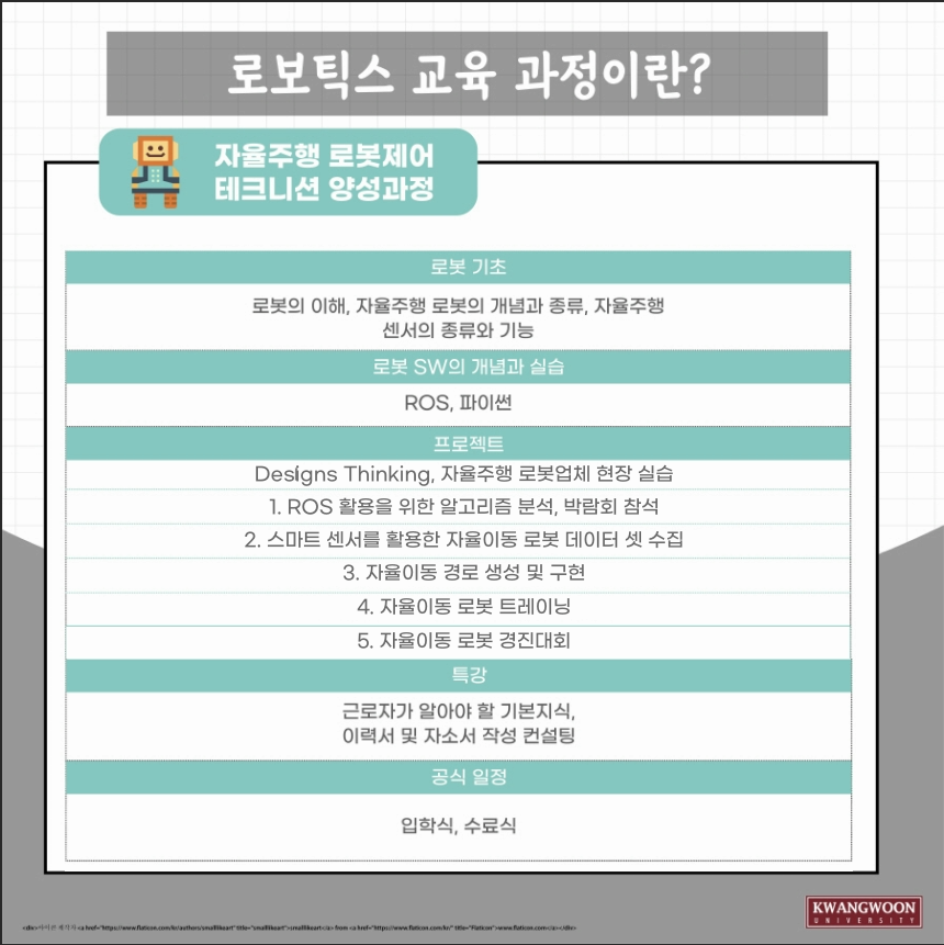 광운대학교 로보틱스 교육과정 교육생 모집을 다음과 같이 안내합니다.