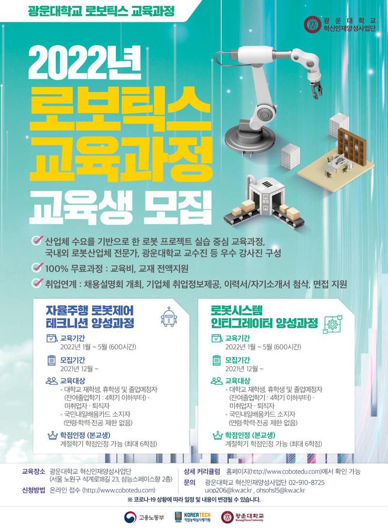 [2022년 광운대학교 로보틱스 교육과정 교육생 모집]