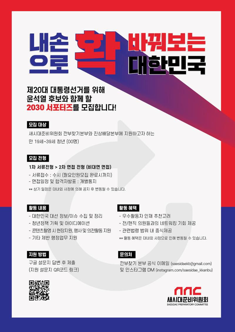 - 새시대준비위원회 / 제20대 대통령선거 준비 2030 서포터즈 모집