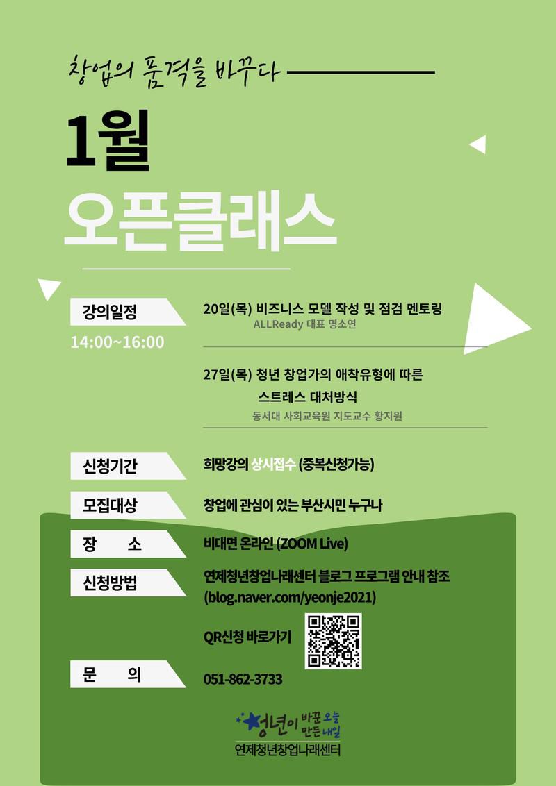 2022년 첫번째 창업강의 <1월 오픈클래스> 관련 안내드립니다.