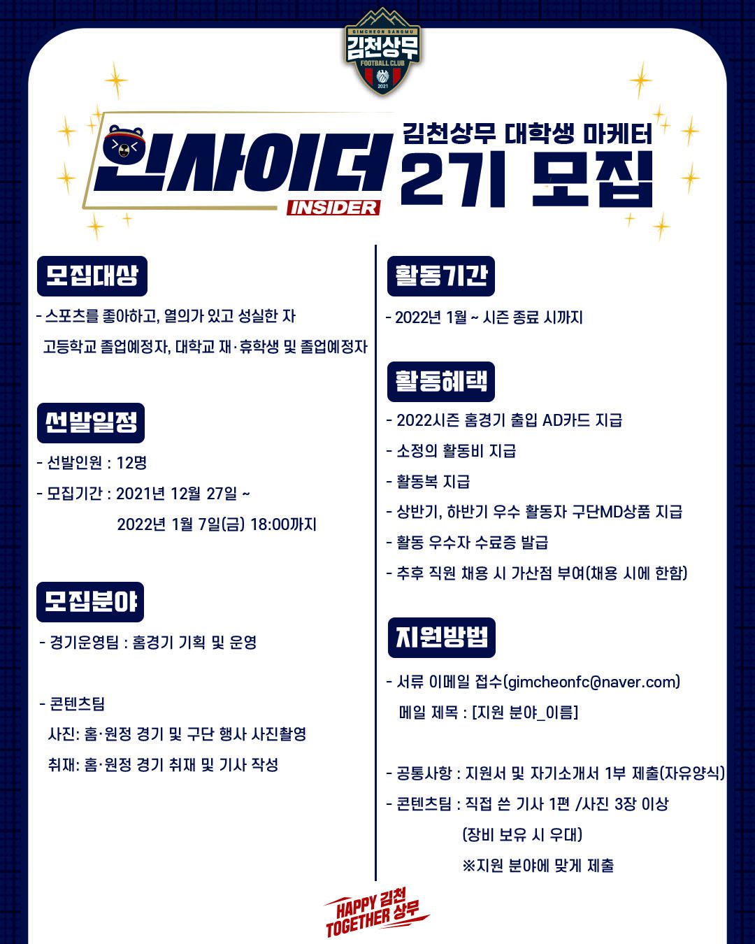 김천상무프로축구단에서 대학생 마케터 인사이더 2기를 모집합니다!