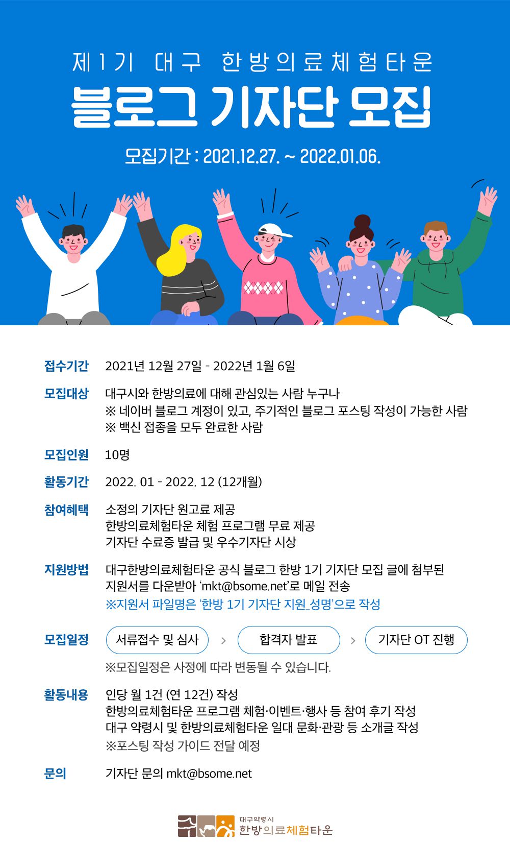 - 지원서 파일명은 '한방 1기 기자단 지원_성명'으로 작성 바랍니다.