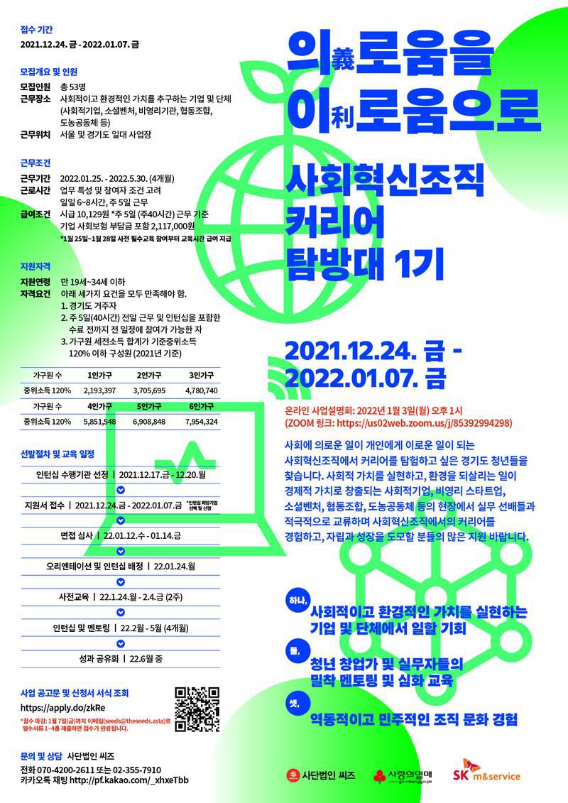 [청년인턴 모집] 「의義로움을 이利로움으로」 - 사회혁신조직 커리어 탐방대 1기 (~22.1.7 마감)