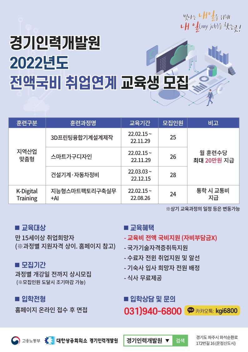 [경기인력개발원] 22년도 전액국비 취업연계 교육생모집