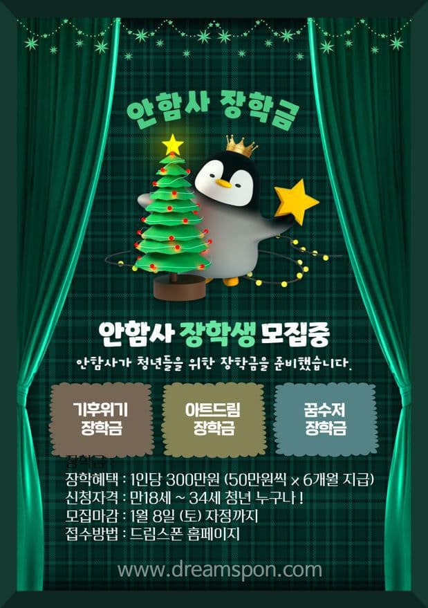 3. 꿈수저 장학금 : 가정형편이 어렵지만, 당당하게 극복하고자 하는 청년