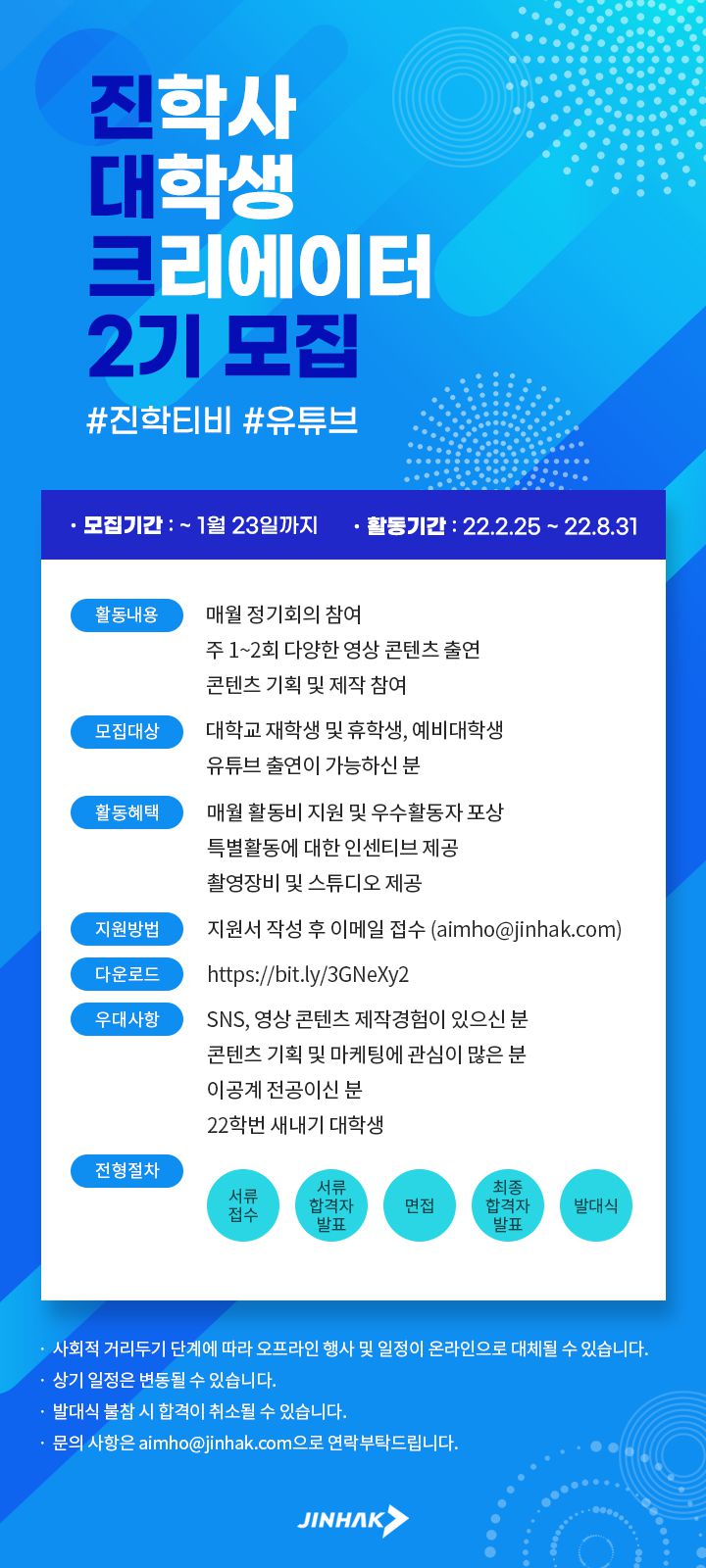 - 진학사와 함께할 대학생 크리에이터를 모집합니다.