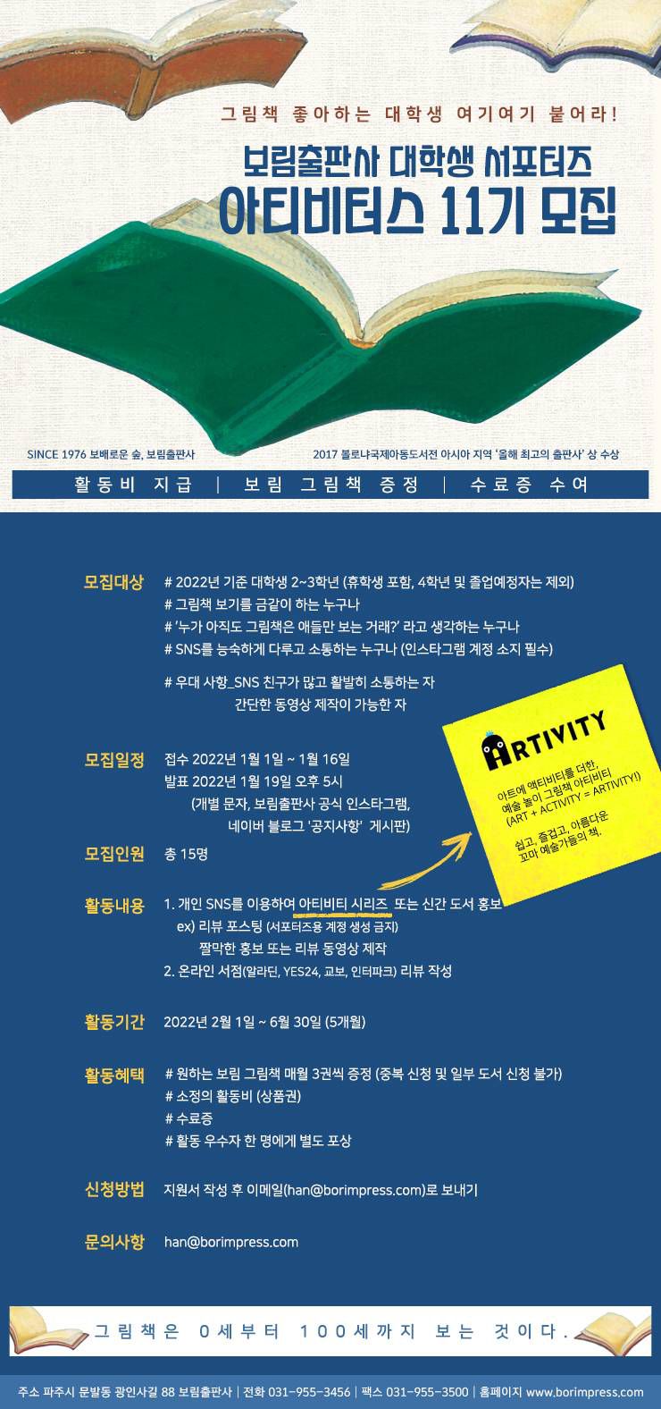 보림출판사 대학생 서포터즈 아티비터스 11기 모집