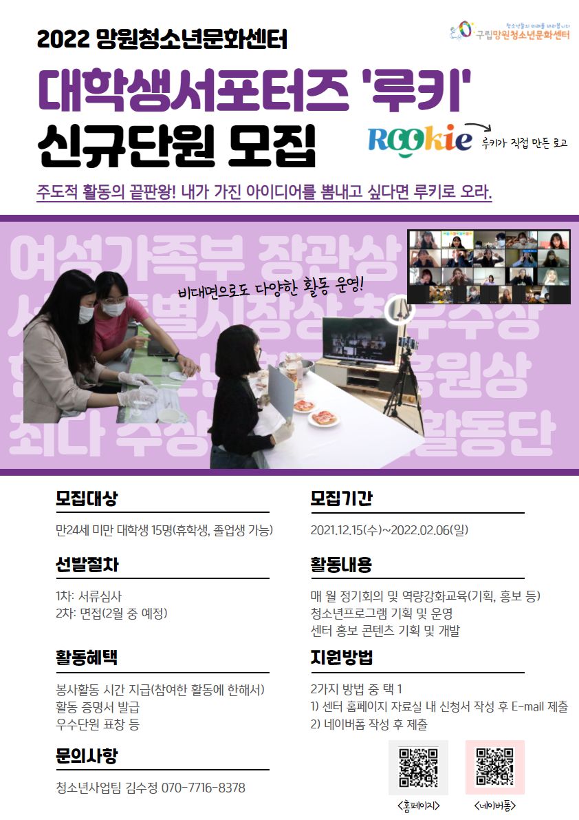 대학생서포터즈 '루키'에서 2022년을 함께 꾸려나갈 신규단원을 모집합니다!