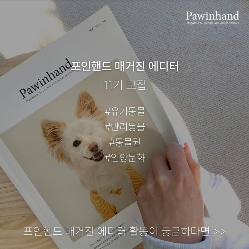 사지 않고 입양하는 문화를 만드는 포인핸드에서 분기별로 발행하는 유기동물 전문 잡지입니다.