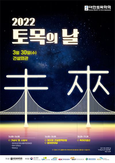 - 기타 자세한 내용은 추후 학회 홈페이지 “2022년 토목의 날 행사”에서 확인할 수 있음