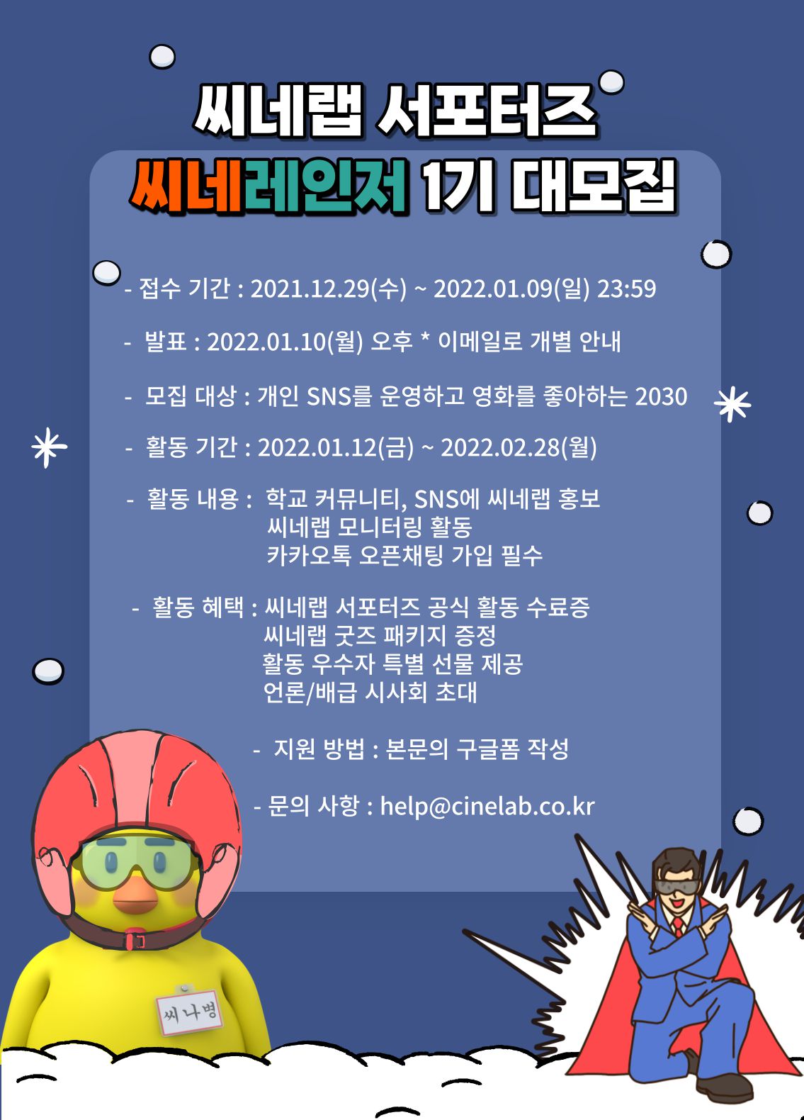 하이,스트레인저에서 [씨네랩] 서포터즈 씨네레인저 1기를 모집합니다.