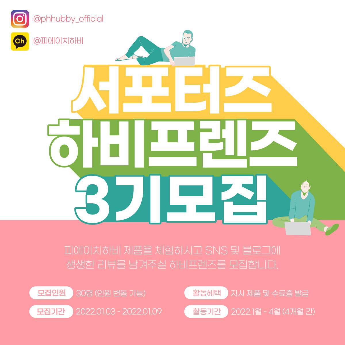 피에이치하비 제품을 사용해보시고 정성스러운 후기를 남겨주실 서포터즈를 모집하고 있습니다.