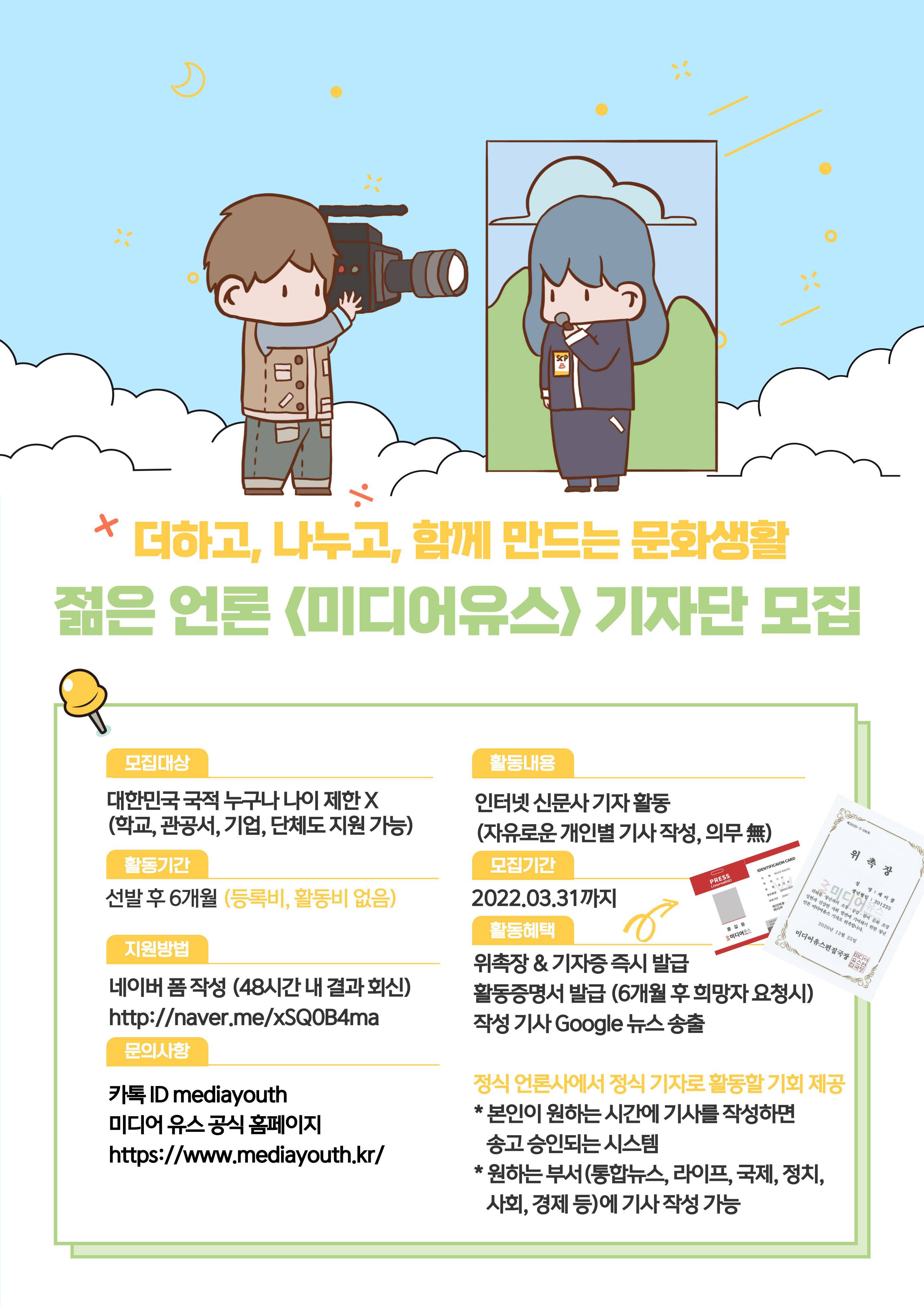 10만명이 보는, 젊은 언론 ‘미디어유스’가 기자로 활동하실 회원을 모집합니다.