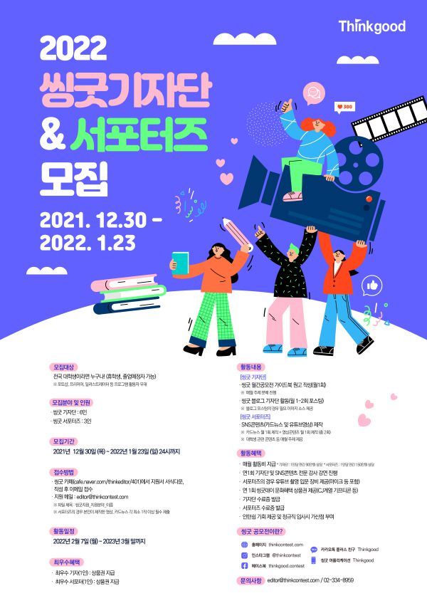 - 씽굿 월간공모전 가이드북 원고 작성(월1회)
