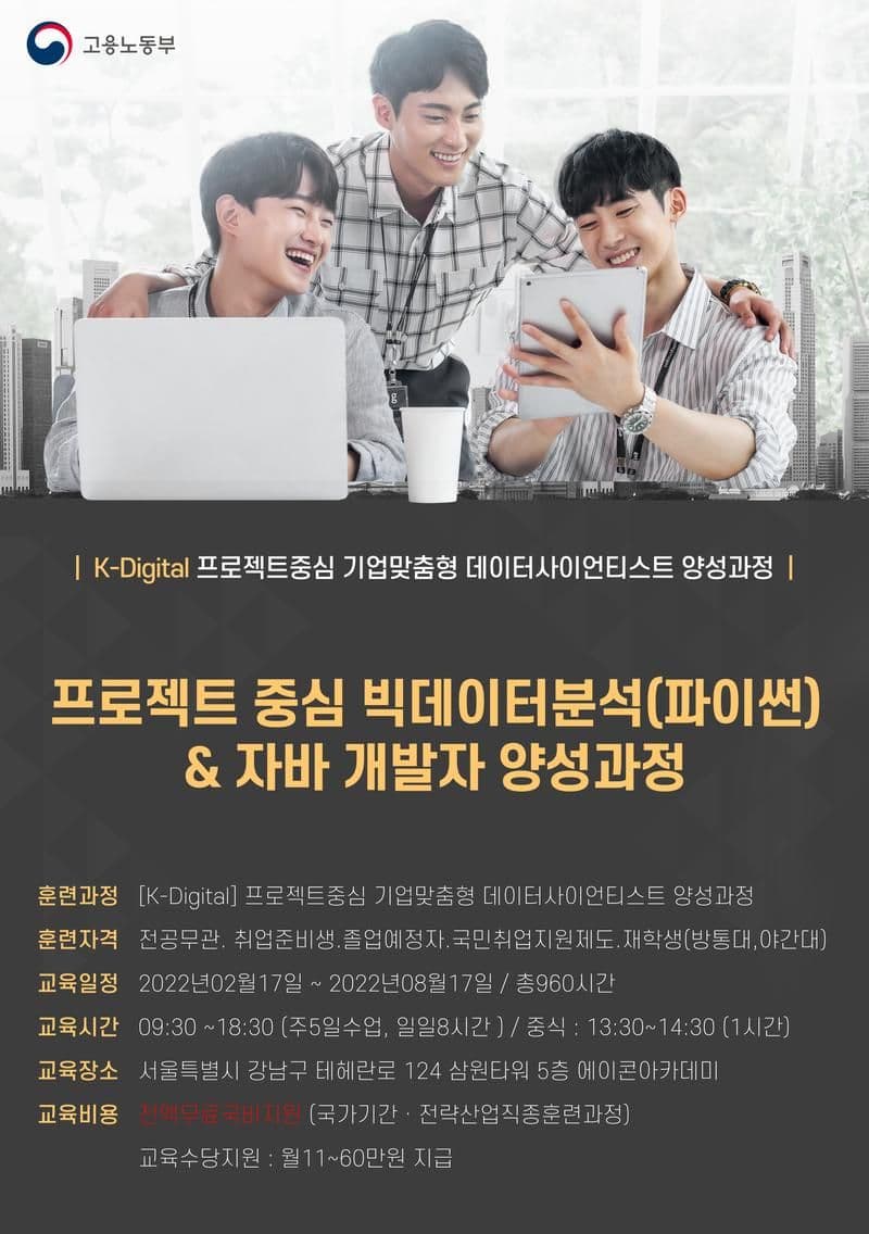 [국비 무료 취업연계 교육] 프로젝트 중심 빅데이터분석(파이썬) & 자바 개발자 양성과정