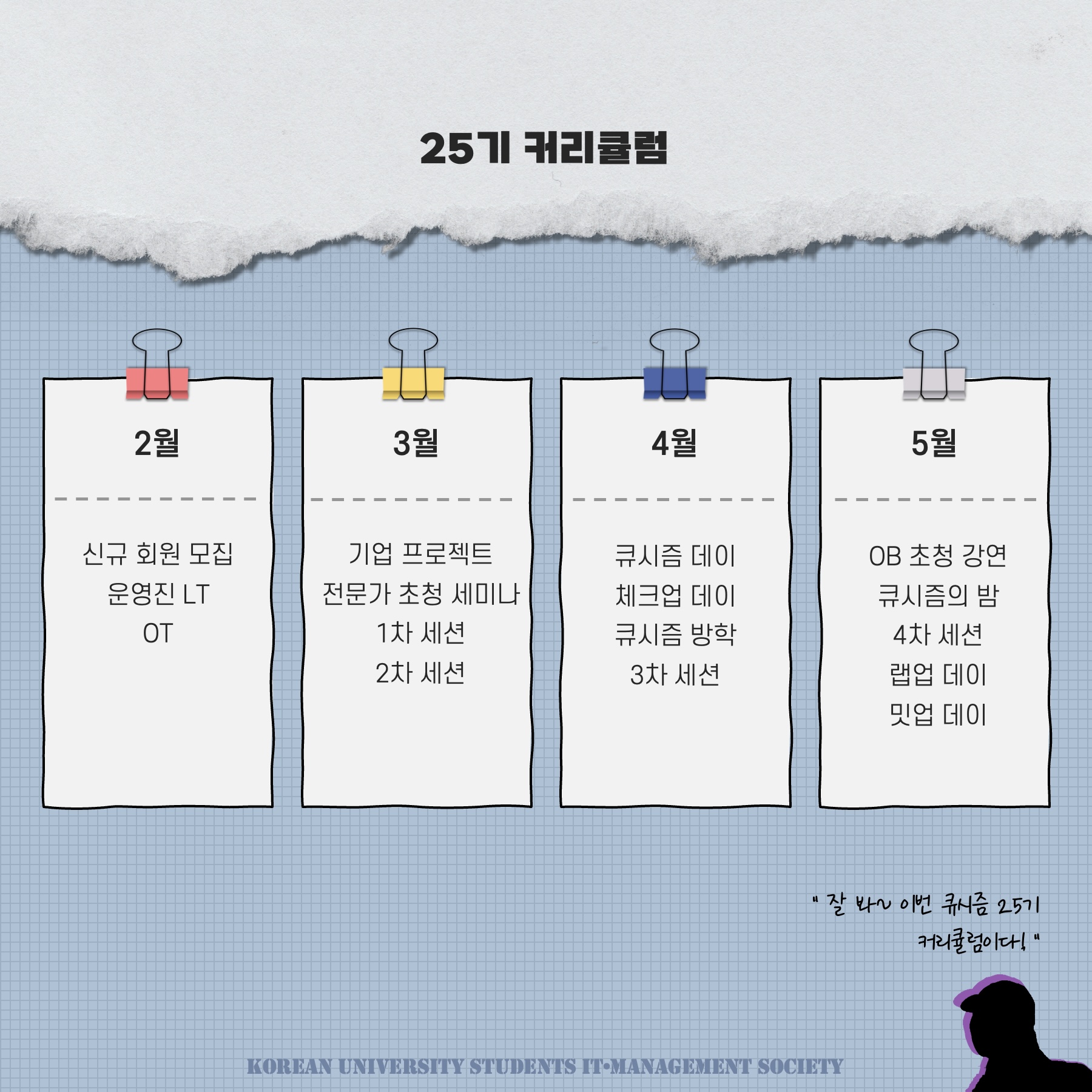 (중간고사 기간에는 큐시즘 방학으로, 정기 커리큘럼을 진행하지 않습니다.)