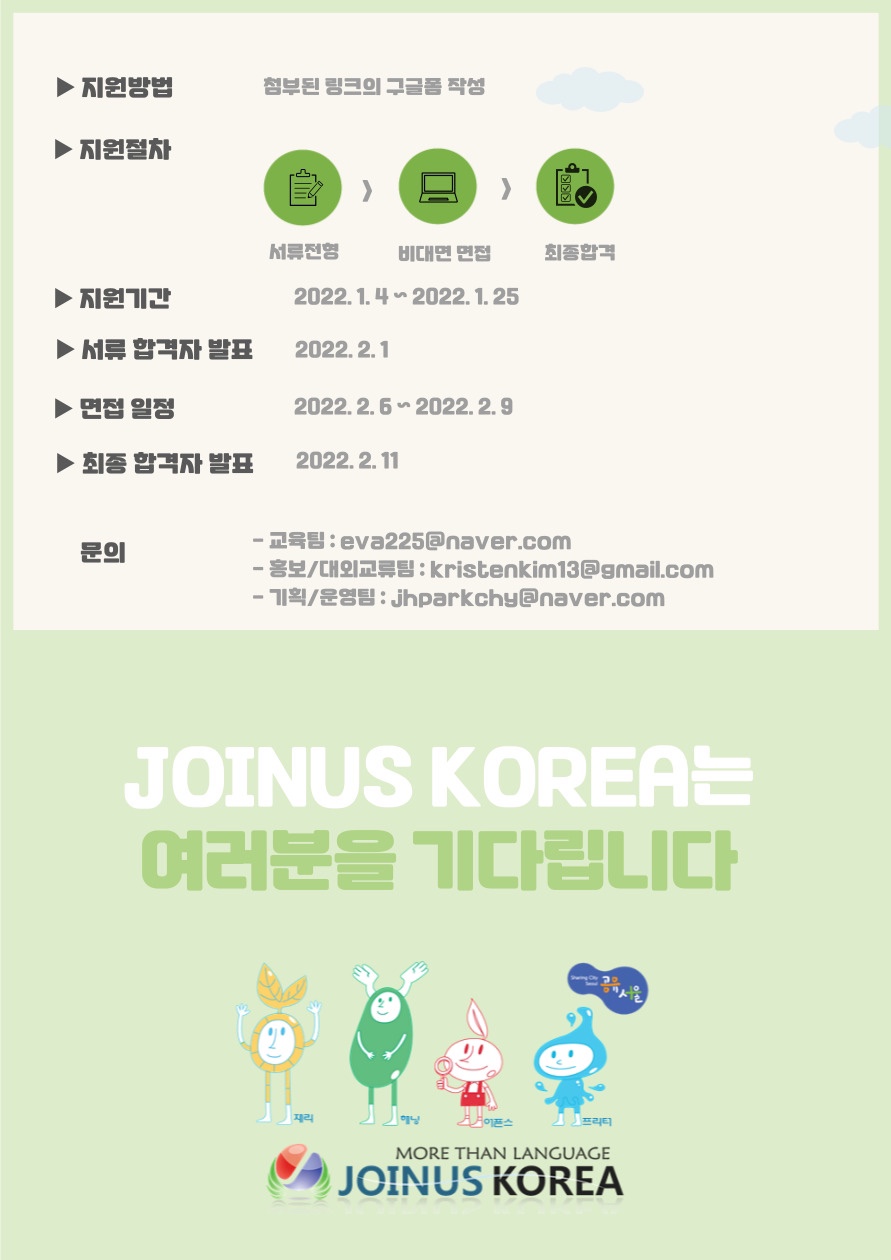 - 홍보대외교류팀: kristenkim13@gmail.com