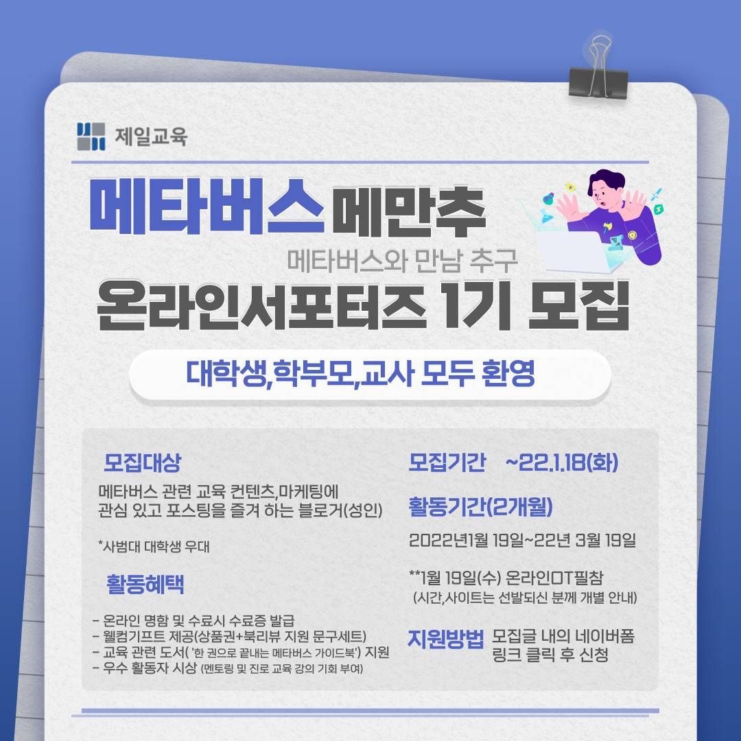 <제일교육>에서 온라인 서포터즈를 모집합니다❤