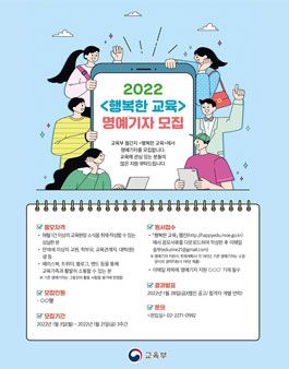 교육 월간지 「행복한 교육」에서 2022년 명예기자를 모집합니다. 교육에 관심 있는 분들의 많은 지원 부탁드립니다.