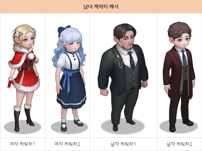 2. 캐릭터 – 그림2를 참고하여 게임 내 적용 가능한 순수 창작 남녀 캐릭터 디자인 2종