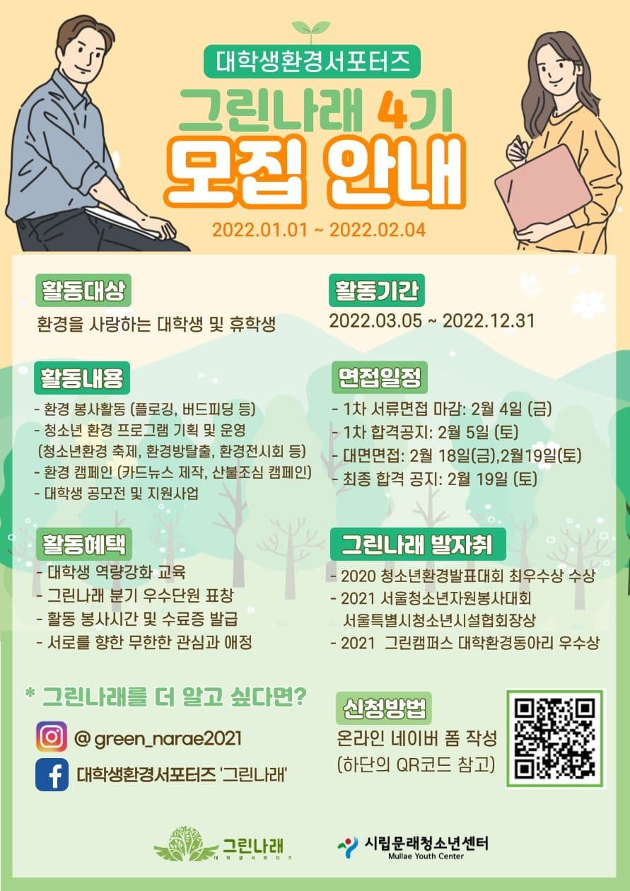 2022년의 첫 달!! 드디어 그린나래 4기 모집을 시작합니다 🥳
