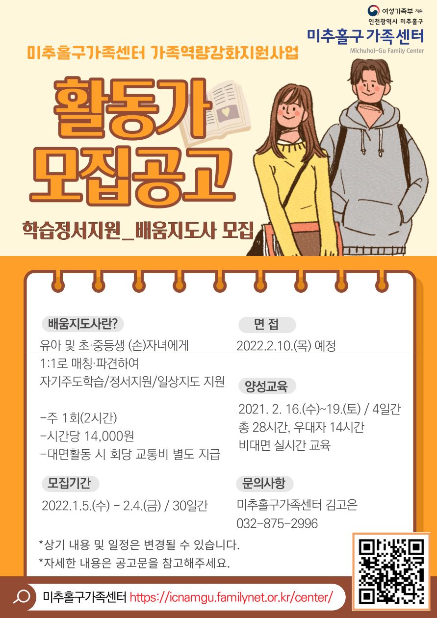 2022년 가족역량강화지원사업 활동가 모집 [배움지도사]