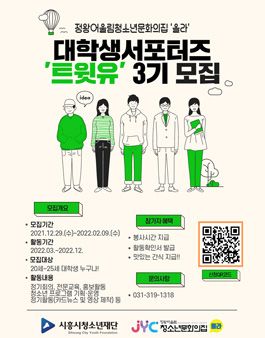 정왕어울림청소년문화의집 '올라'(이하 올라청소년문화의집)에서 대학생 서포터즈 '트윗유' 3기를 모집합니다.