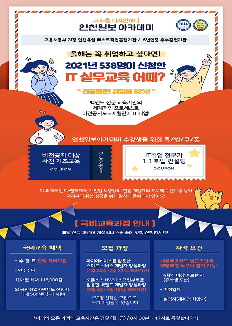 취업으로 고민하는 IT 전공자도, 비전공자도! 2022년엔 인천일보아카데미와 취뽀하세요!