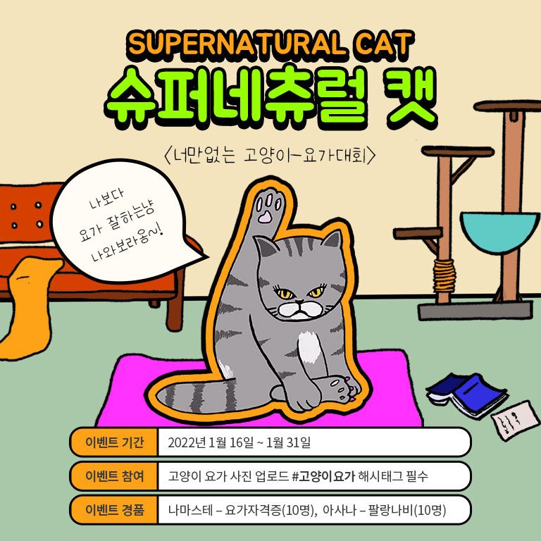 🌼참여방법 : 고양이 요가 사진 업로드, #요가대회 해시태그 필수