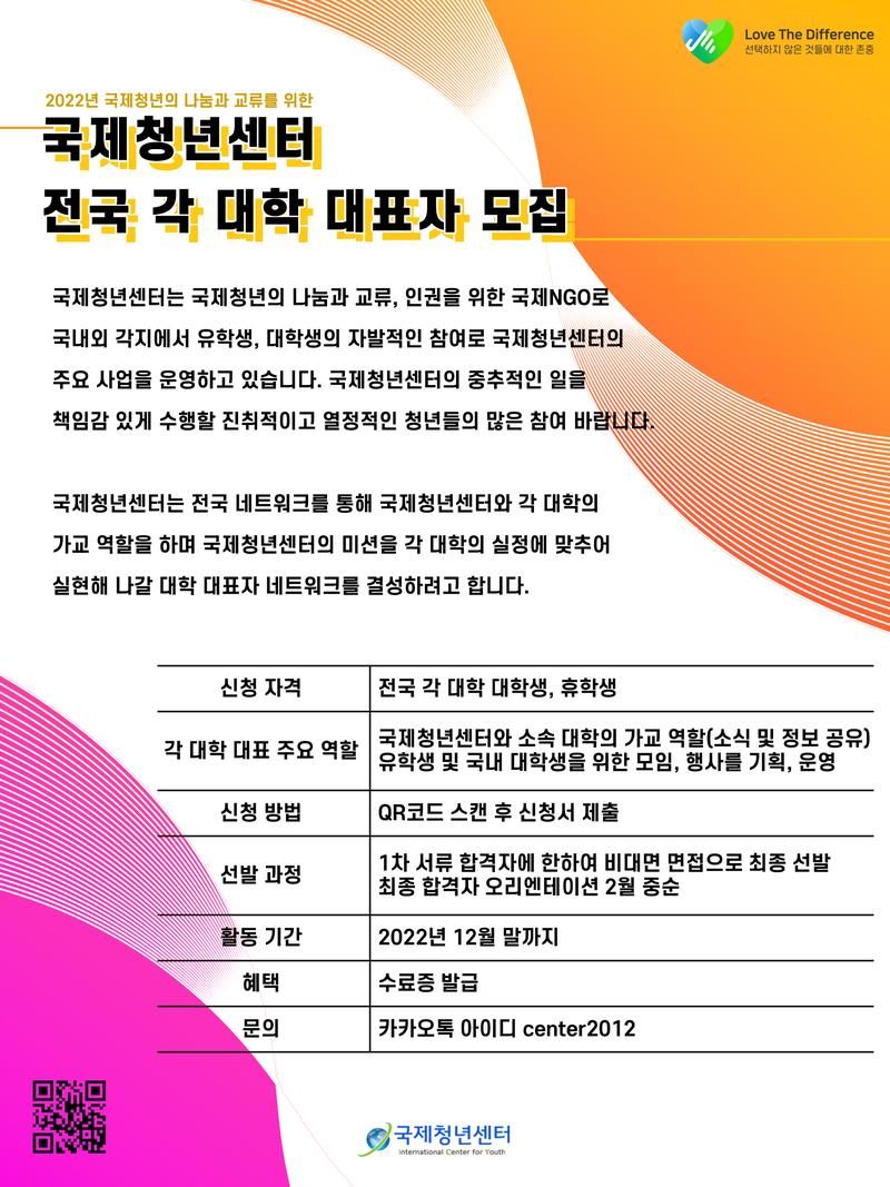 국제청년센터의 중추적인 일을 책임감 있게 수행할 진취적이고 열정적인 청년들의 많은 참여 바랍니다.