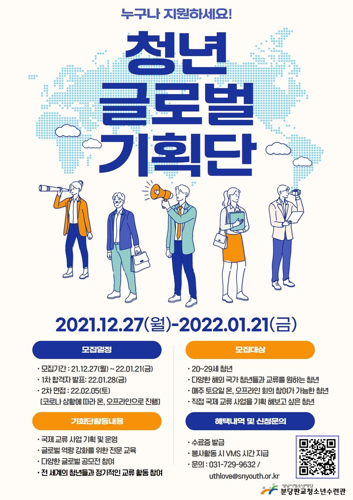 분당판교청소년수련관과 함께 세계로 나아갈 청년을 모집합니다!