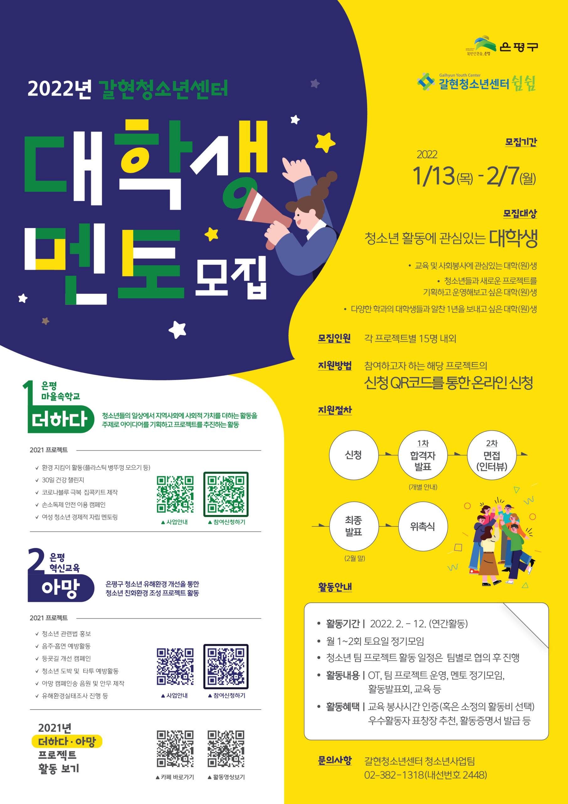 2022 갈현청소년센터 청소년 프로젝트 사업 대학생 멘토 모집