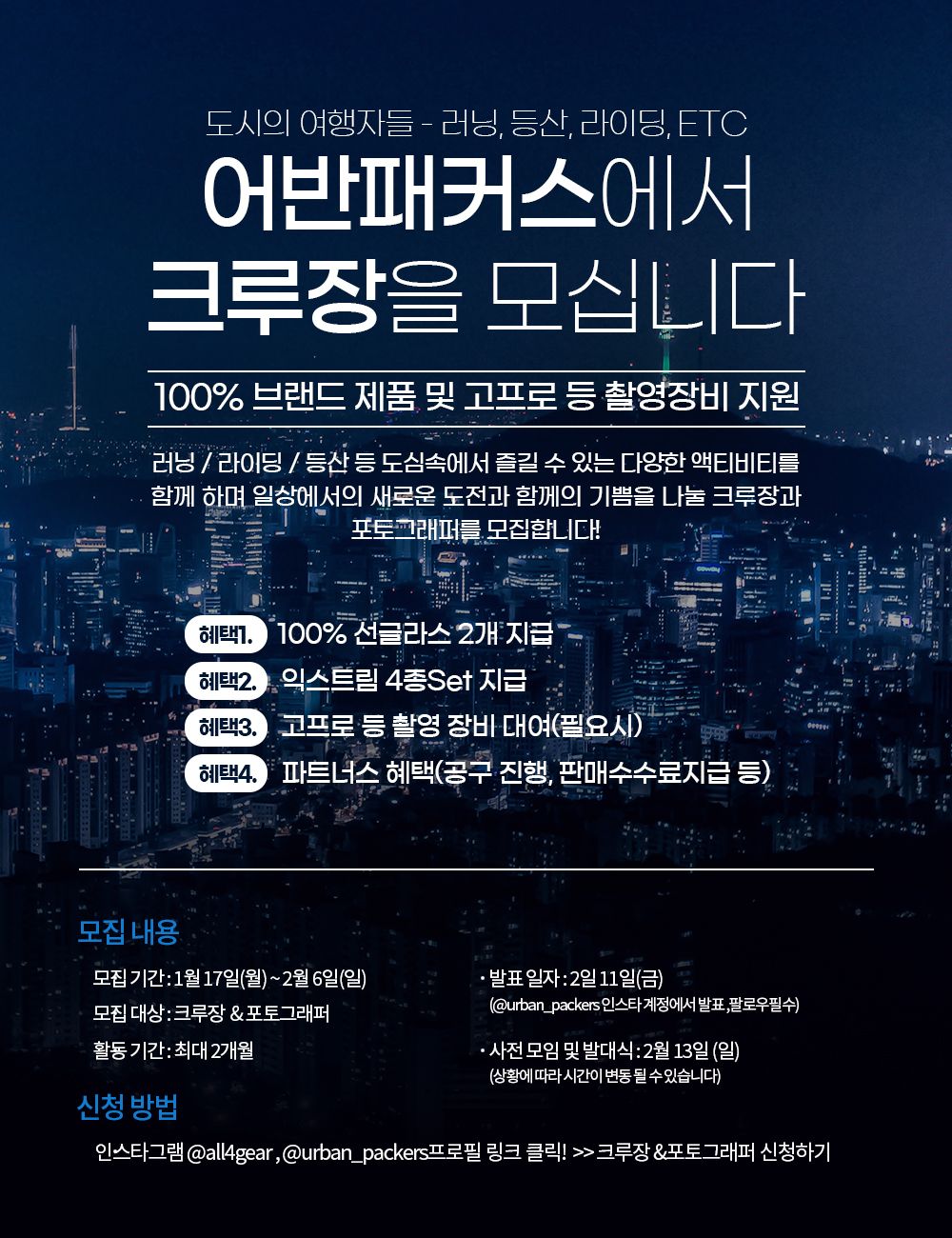 - 어반패커스 크루 활동기간은 최대 2개월 입니다.