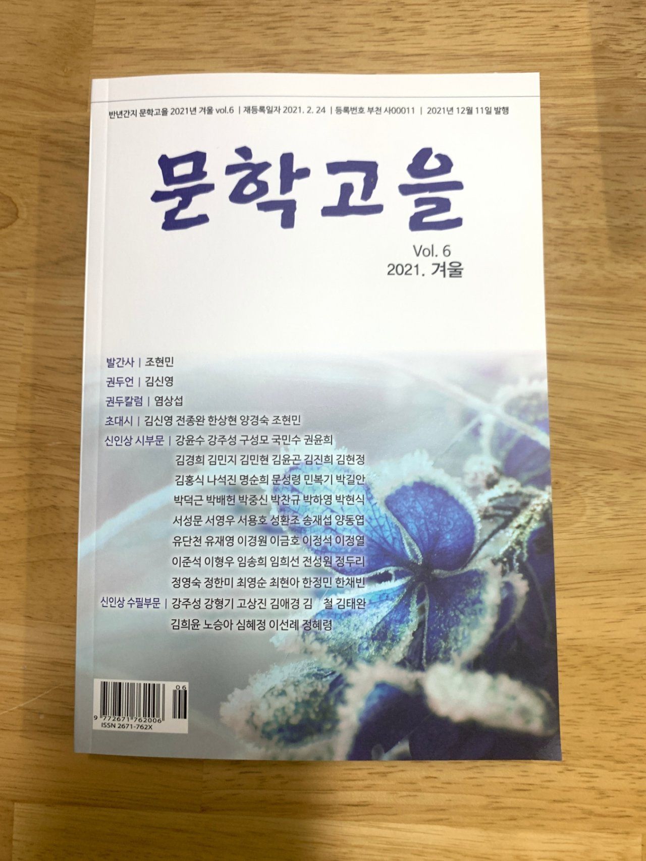 나) 등단 작가에게는 등단패와 등단인증서, 작가헌장 등을 수여하여 작품은 계간지에 당선작 포함 시3편 수필1편 심사평과 본인의 약력, 프로필 사진 등단 소감문이 함께 실립니다