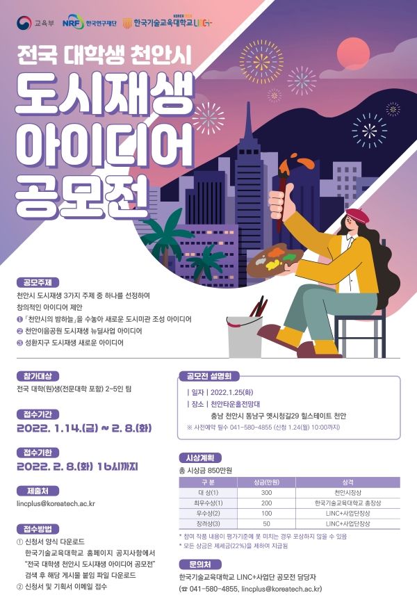 - 공모전 담당 : 코리아텍 LINC+사업단 담당자 (041-580-4855)